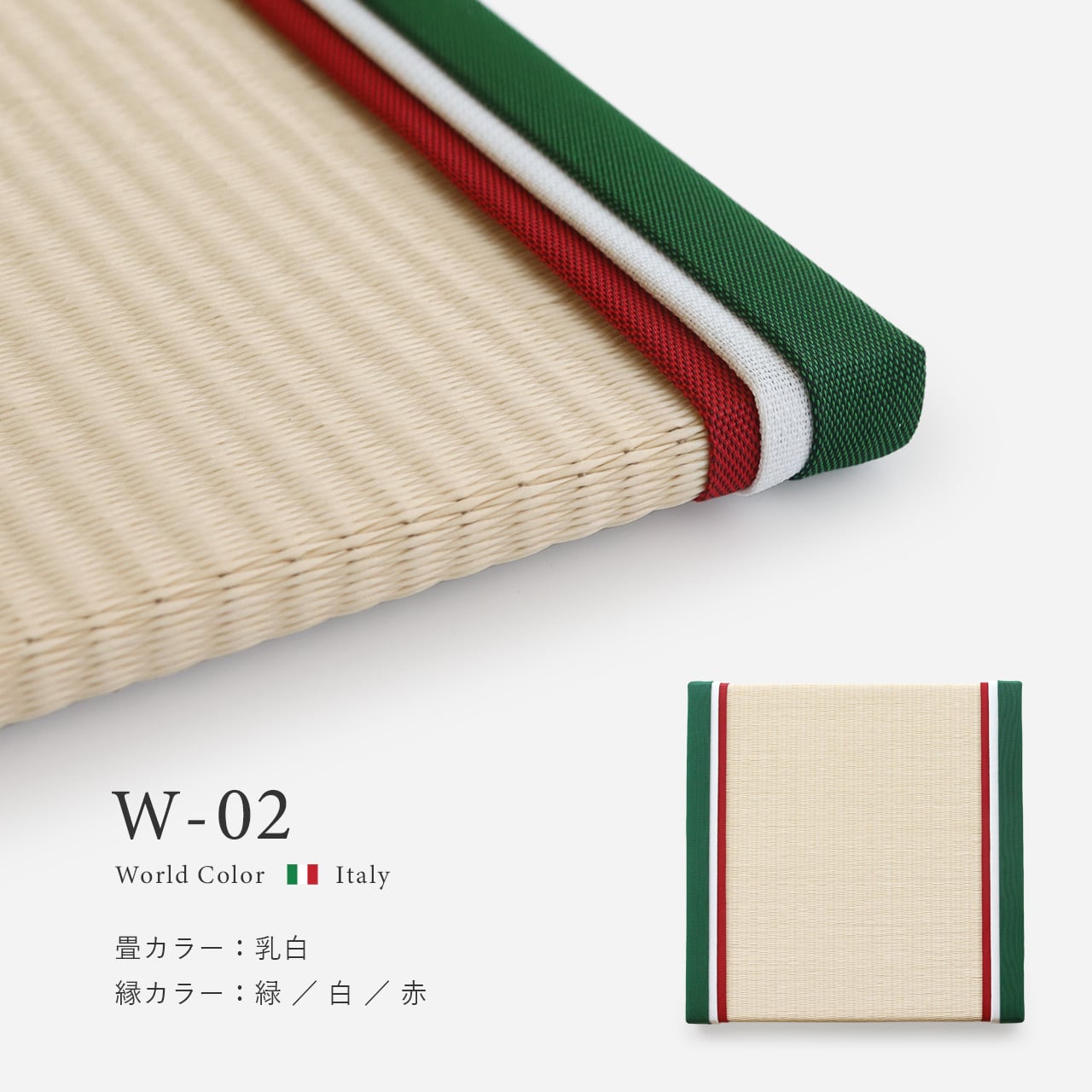 W-02 イタリア 畳 :乳白 縁:緑/白/赤
