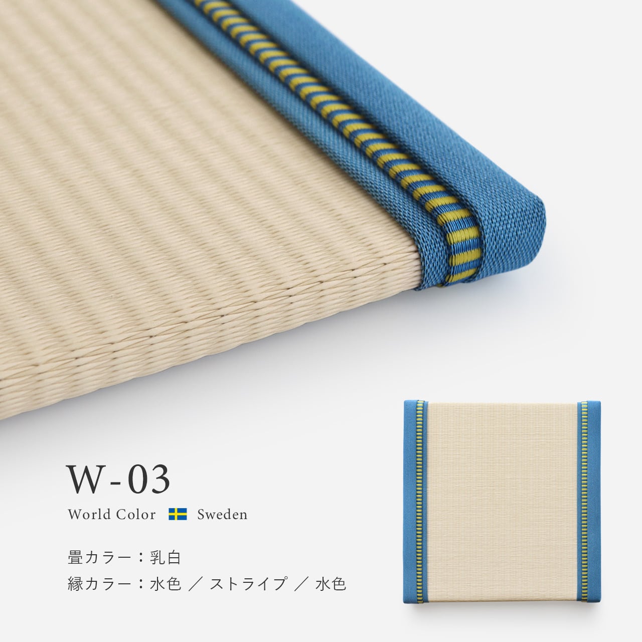 Wー03 スウェーデン 畳 :乳白 縁:水色/ストライプ/水色