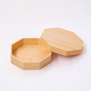 樹齢80年以上の吉野檜で作られた継ぎ目がなく縁起の良い八角形のお重です。